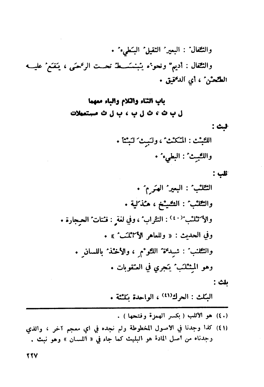 باب الثاء واللام والباء معهما ل ب ث، ث ل ب، ب ل ث مستعملات