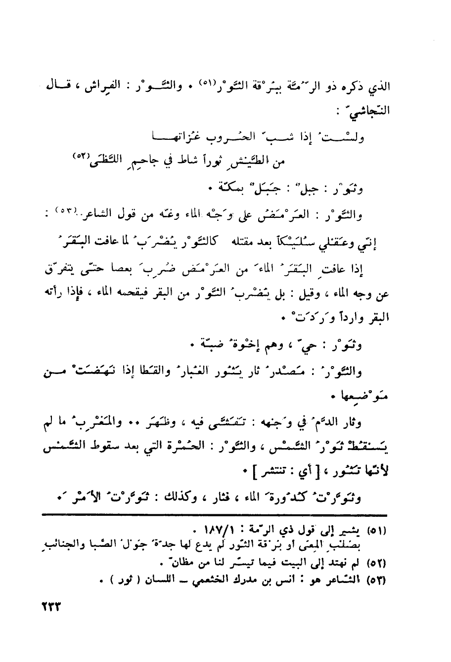 (52) يشير إلى قول (ذي الرمة:) 1/ 187.