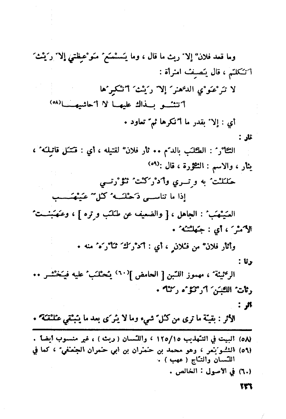 (59) البيت في التهذيب 15/ 125، واللسان (ريث) ، غير منسوب أيضا.