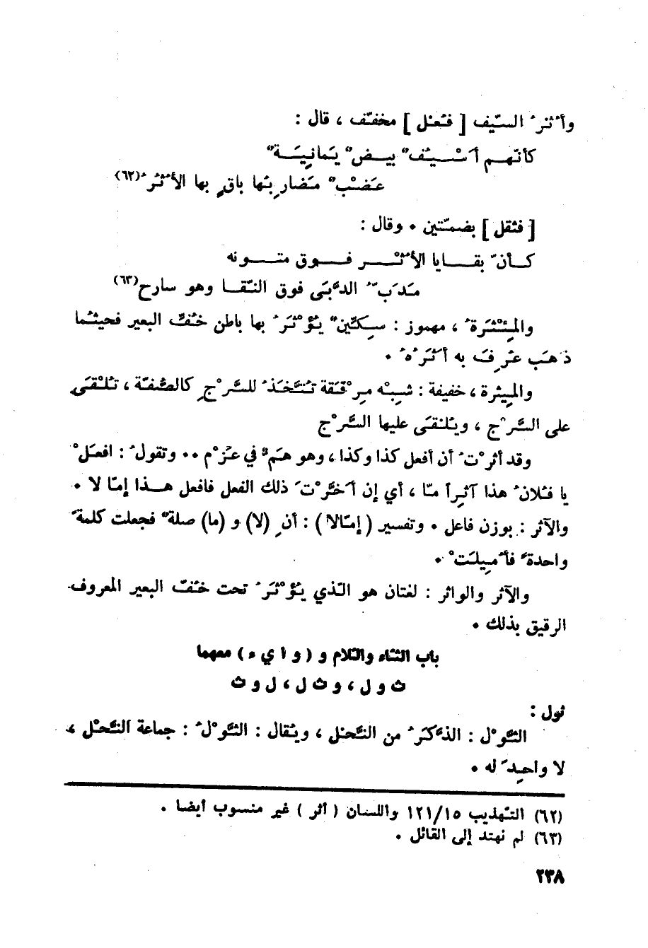 (63) التهذيب 15/ 121 واللسان (أثر) غير منسوب أيضا.