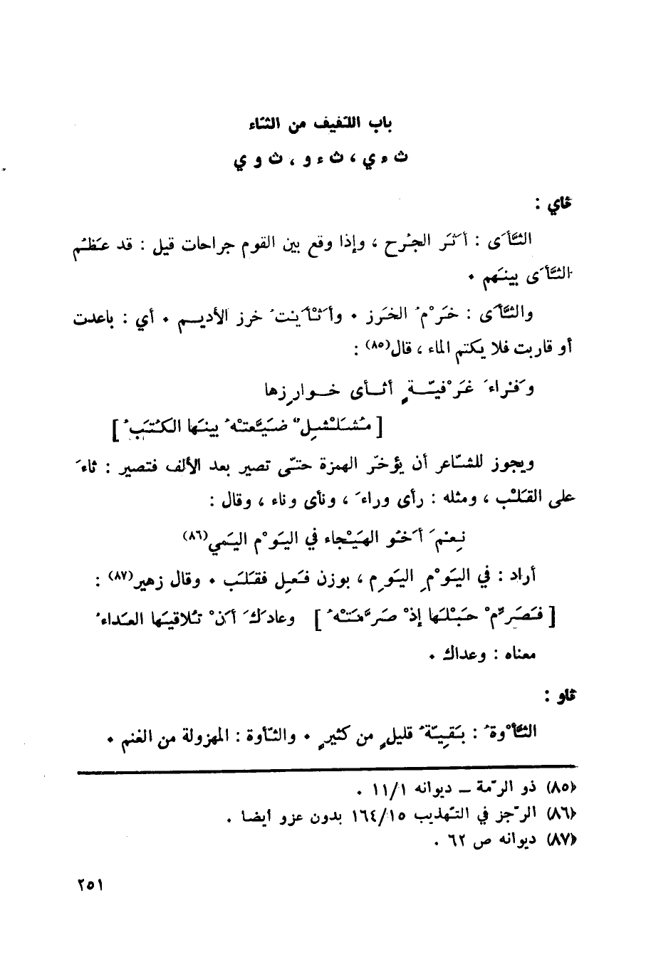 باب اللفيف من الثاء ثء ي، ثء و، ث وي