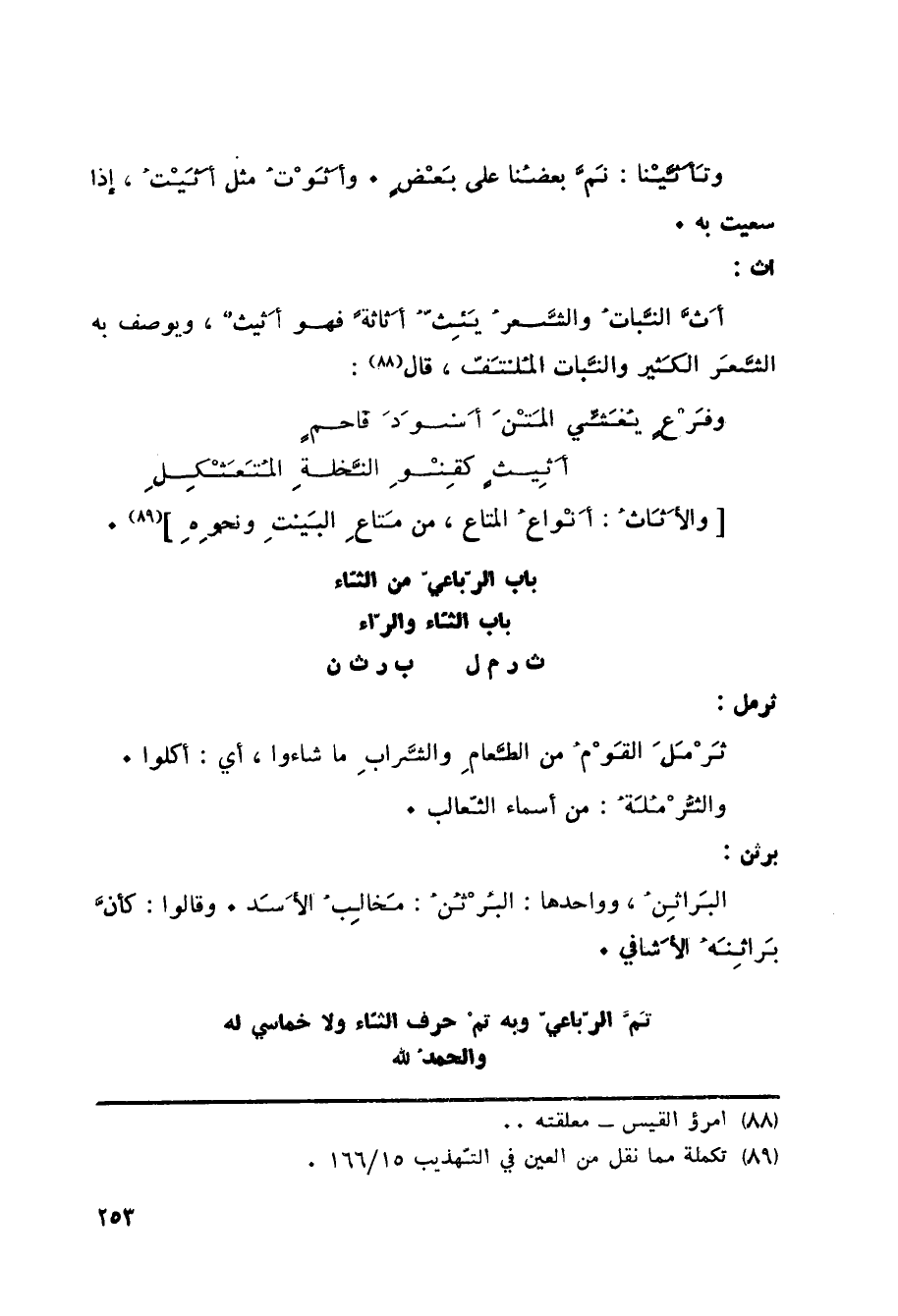 تَمَّ الرّباعيّ وبه تمْ حرف الثّاء ولا خماسي له والحمد لله