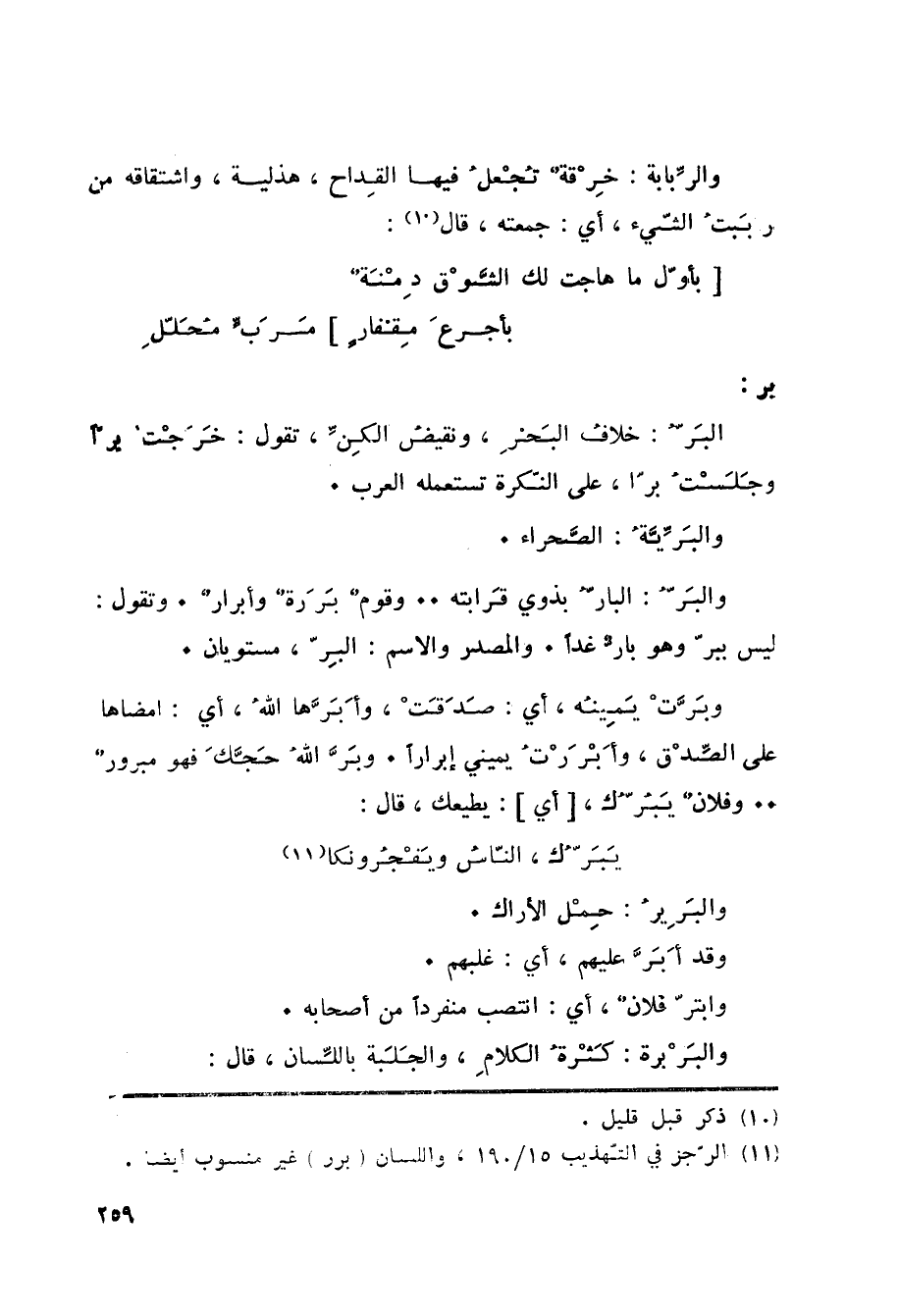 (11) الرجز في التهذيب 15/ 190، واللسان (برر) غير منسوب أيضا.
