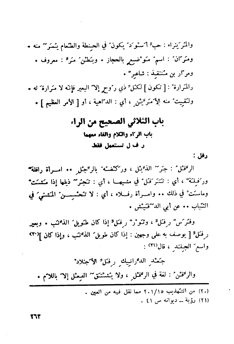 باب الرّاء والّلام والفاء معهما ر ف ل تستعمل فقط