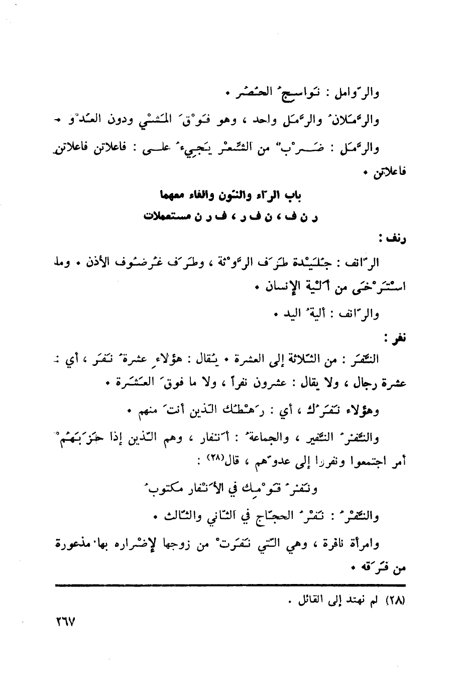 باب الراء والنون والفاء معهما ر ن ف، ن ف ر، ف ر ن مستعملات