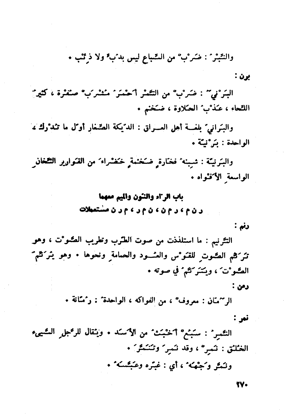 باب الراء والنون والميم معهما ر ن م، ر م ن، ن م ر، م ر ن مستعملات