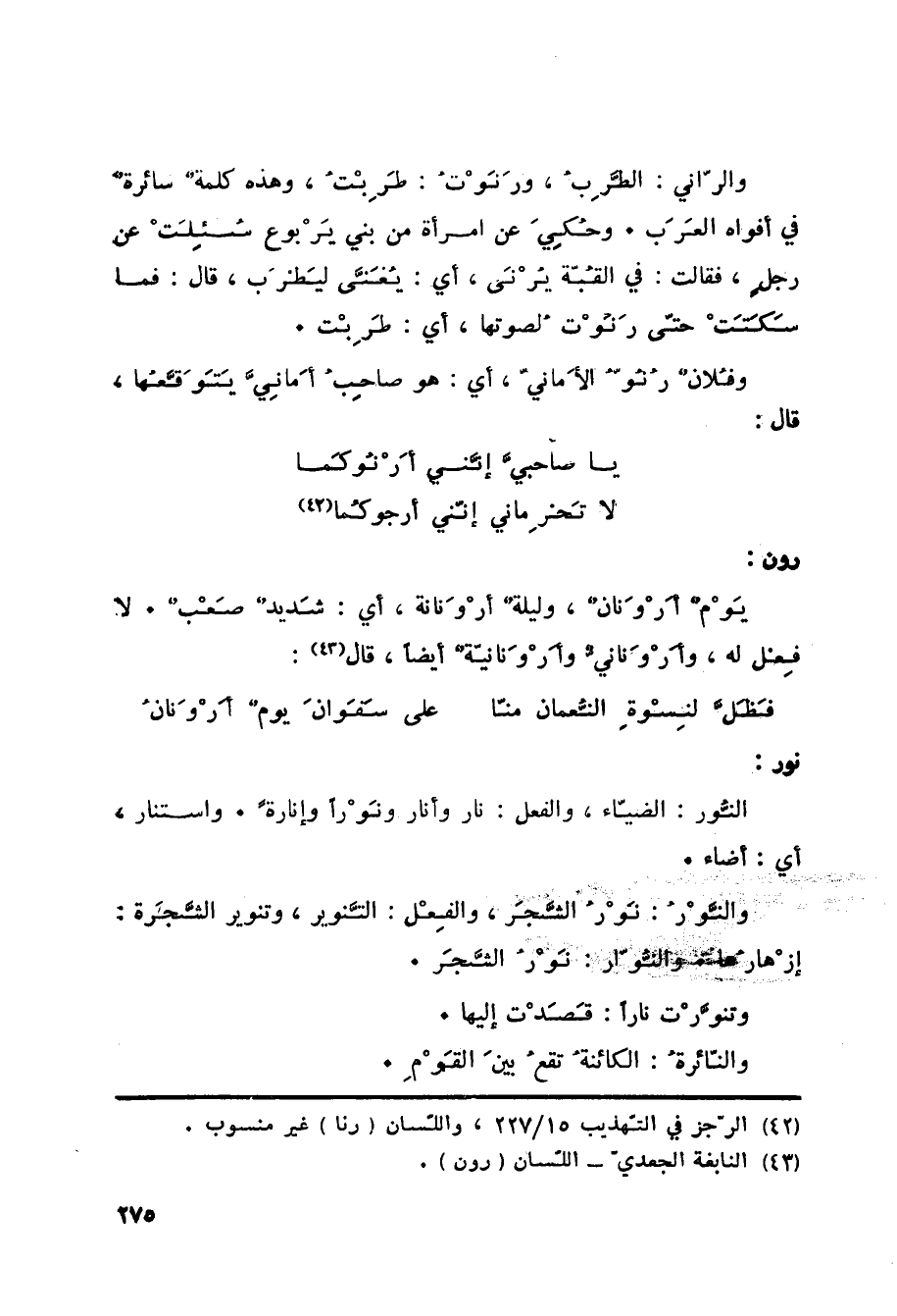 (42) الرجز في التهذيب 15/ 227، واللسان (رنا) غير منسوب.
