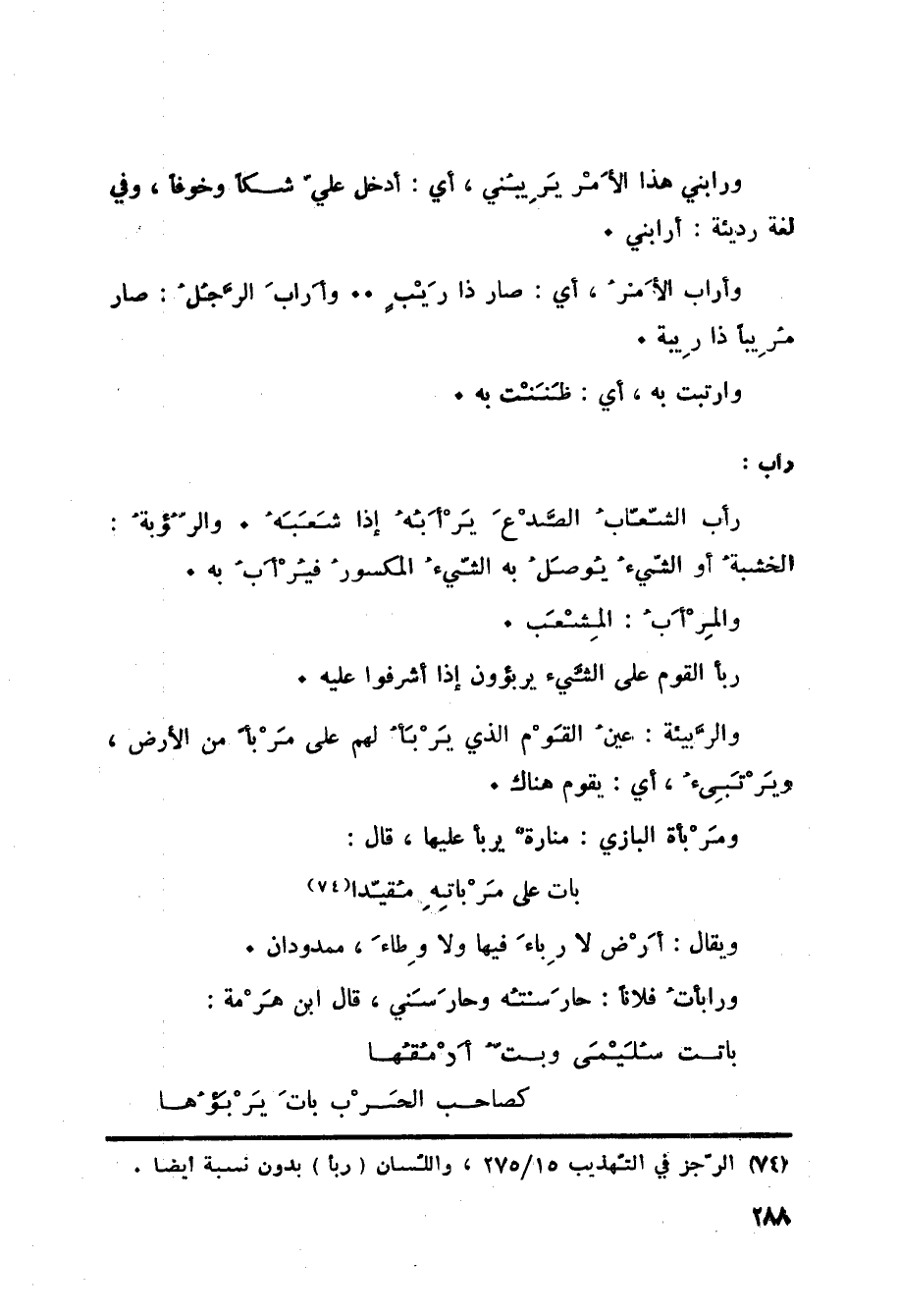 (74) الرجز في التهذيب 15/ 275، واللسان (ربأ) بدون نسبة أيضا.