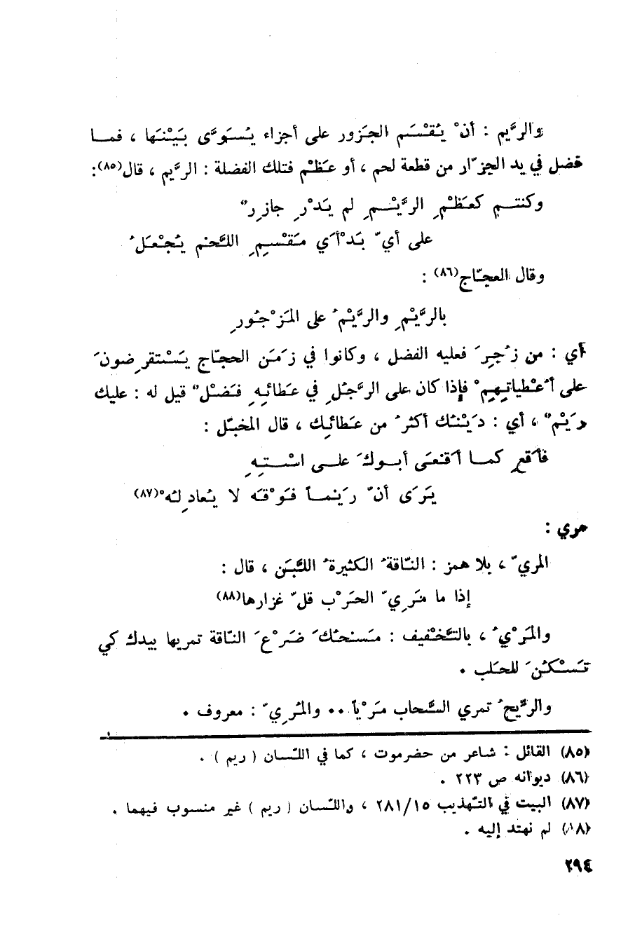 (85) القائل: شاعر من حضرموت، كما في اللسان (ريم) .