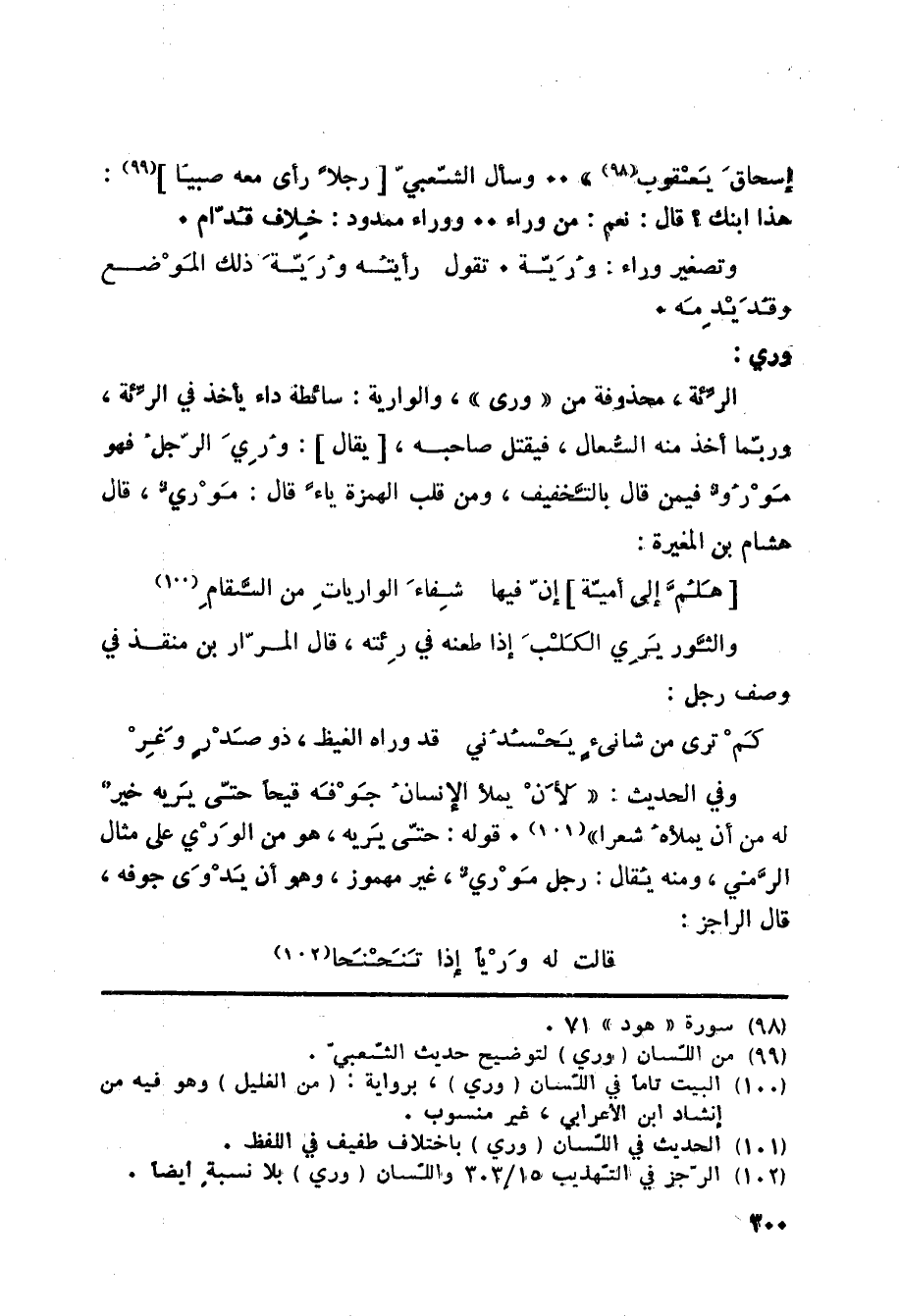 (99) من اللسان (وري) لتوضيح حديث الشعبي.