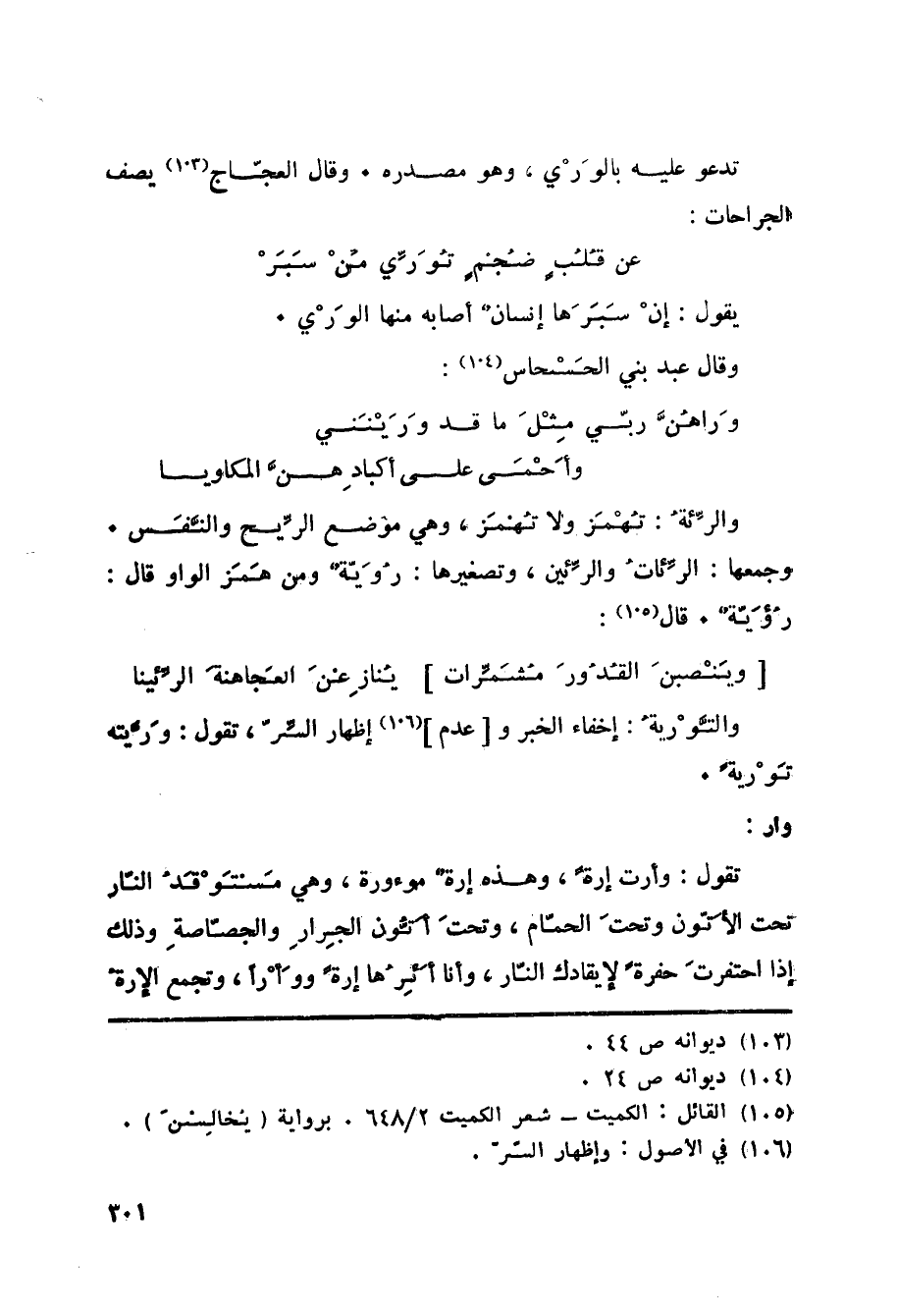 تدعو عليه بالوَرْي، وهو مصدره. وقال العجّاج «103» يصف الجراحات: