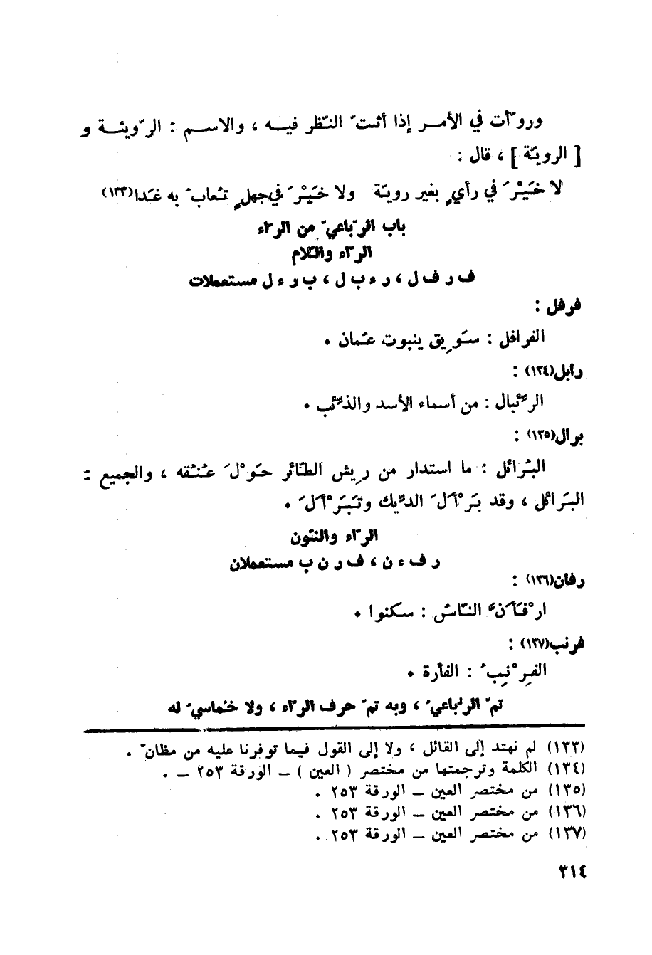 (134) الكلمة وترجمتها من مختصر (العين) - الورقة 253-.