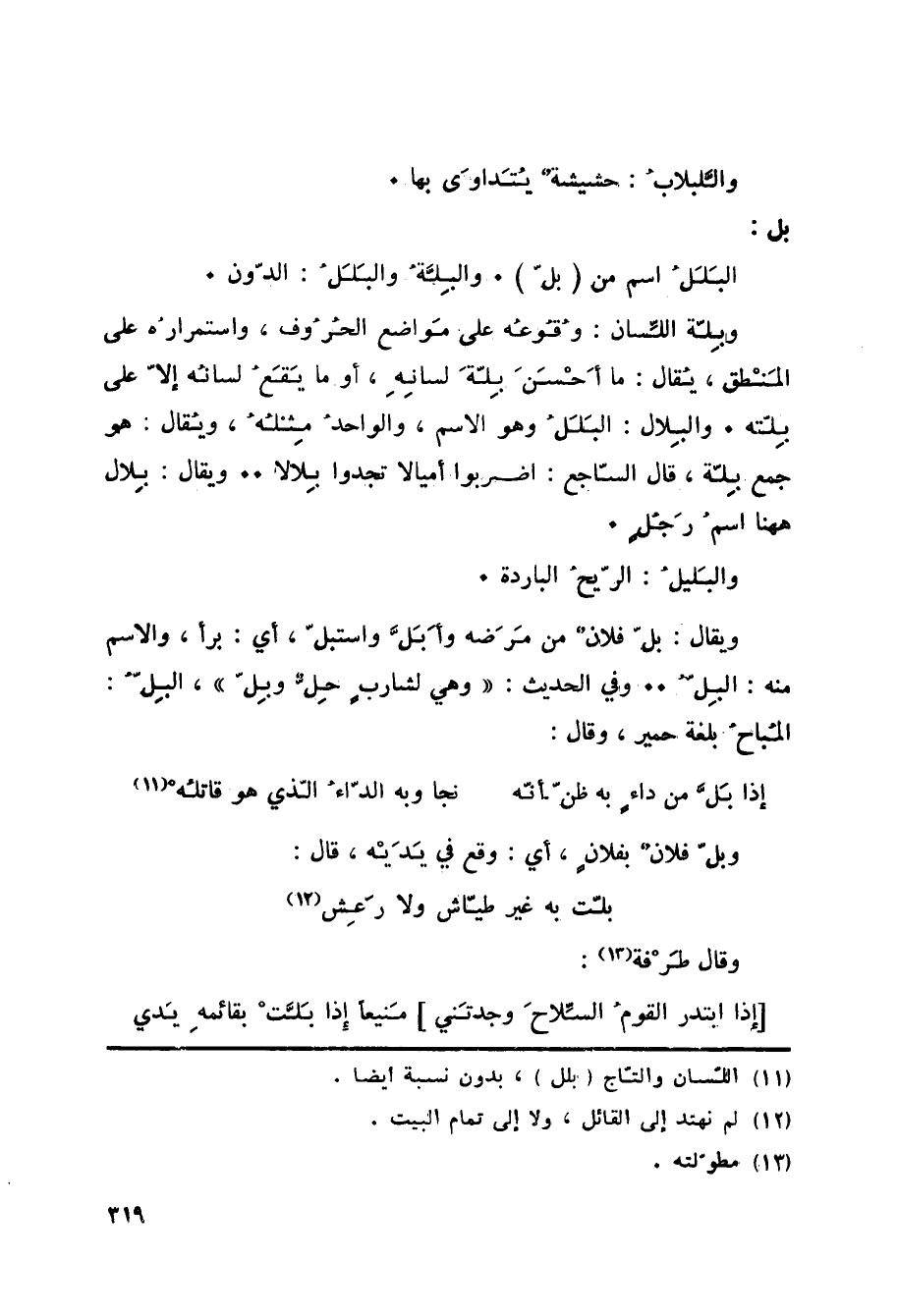 (11) اللسان والتاج (بلل) ، بدون نسبة أيضا.