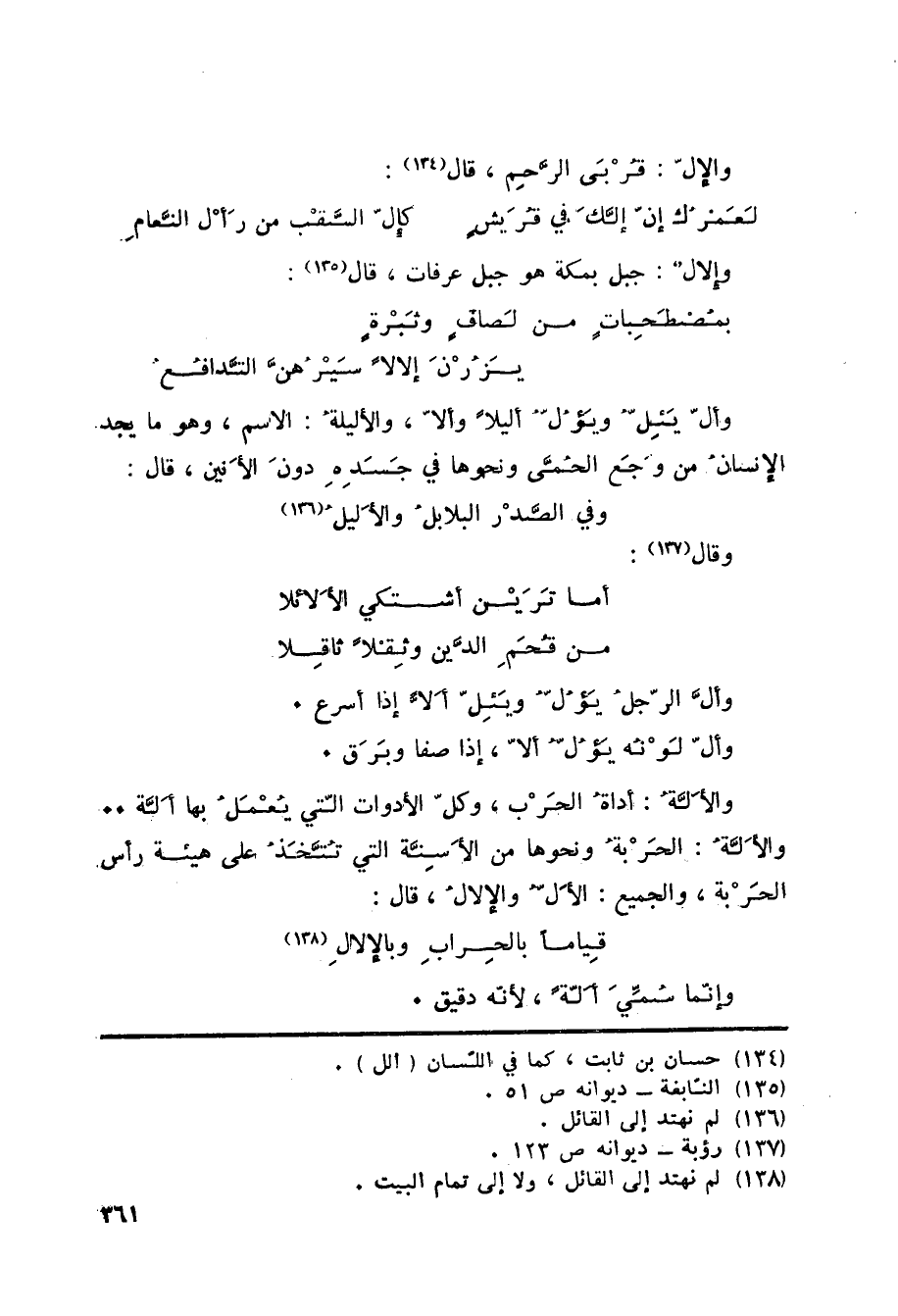 (134) (حسان بن ثابت) ، كما في اللسان (ألل) .