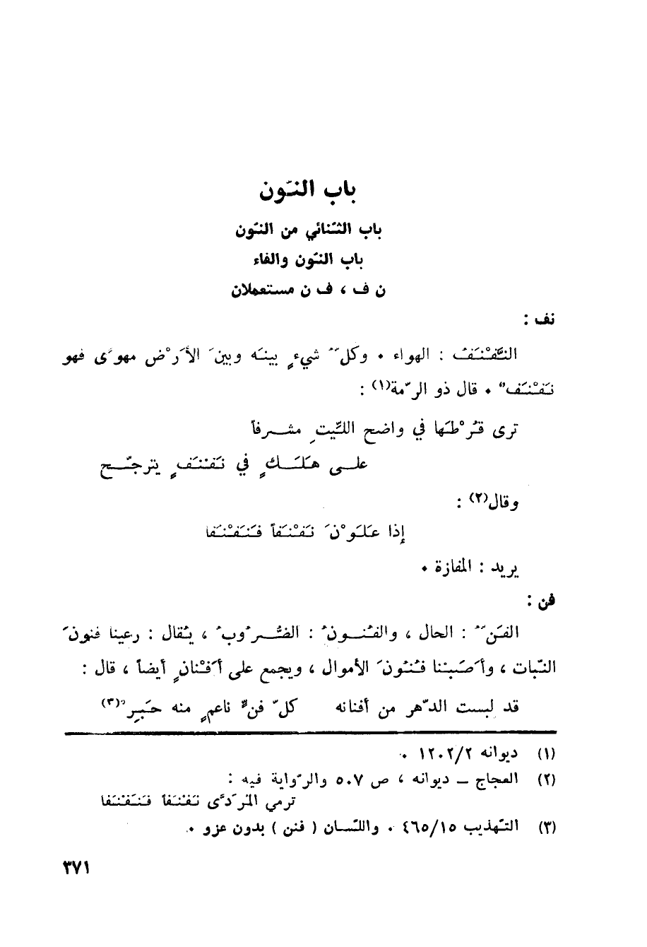 (3) التهذيب 15/ 465. واللسان (فنن) بدون عزو.