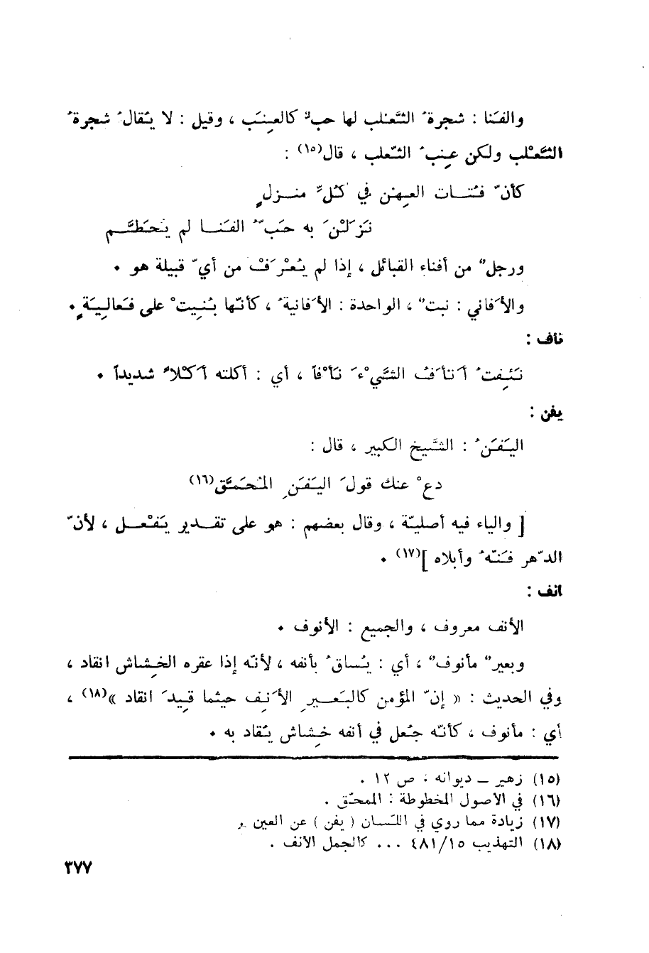 (17) زيادة مما روي في اللسان (يفن) عن العين.