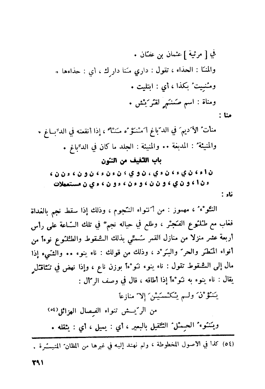 باب اللفيف من النون ن اء، ن يء، نء ي، ن وي، نء نء، ن ون، ء ن ن، ء ن ا، ون ي، ون ن، وء ن، ء ون، ء ي ن مستعملات