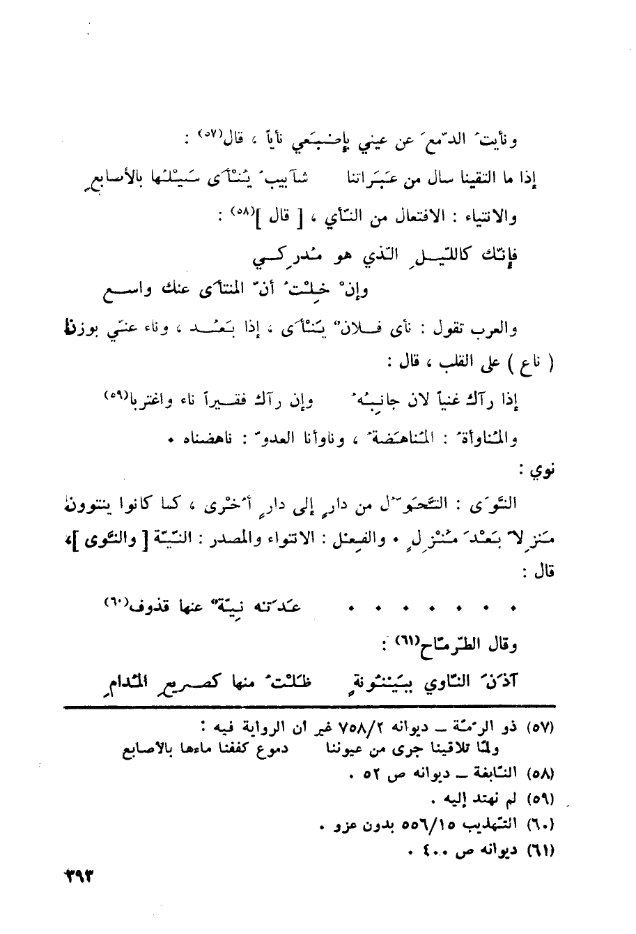 ونأيتُ الدّمعَ عن عيني بإِصْبَعي نأياً، قال: «57»