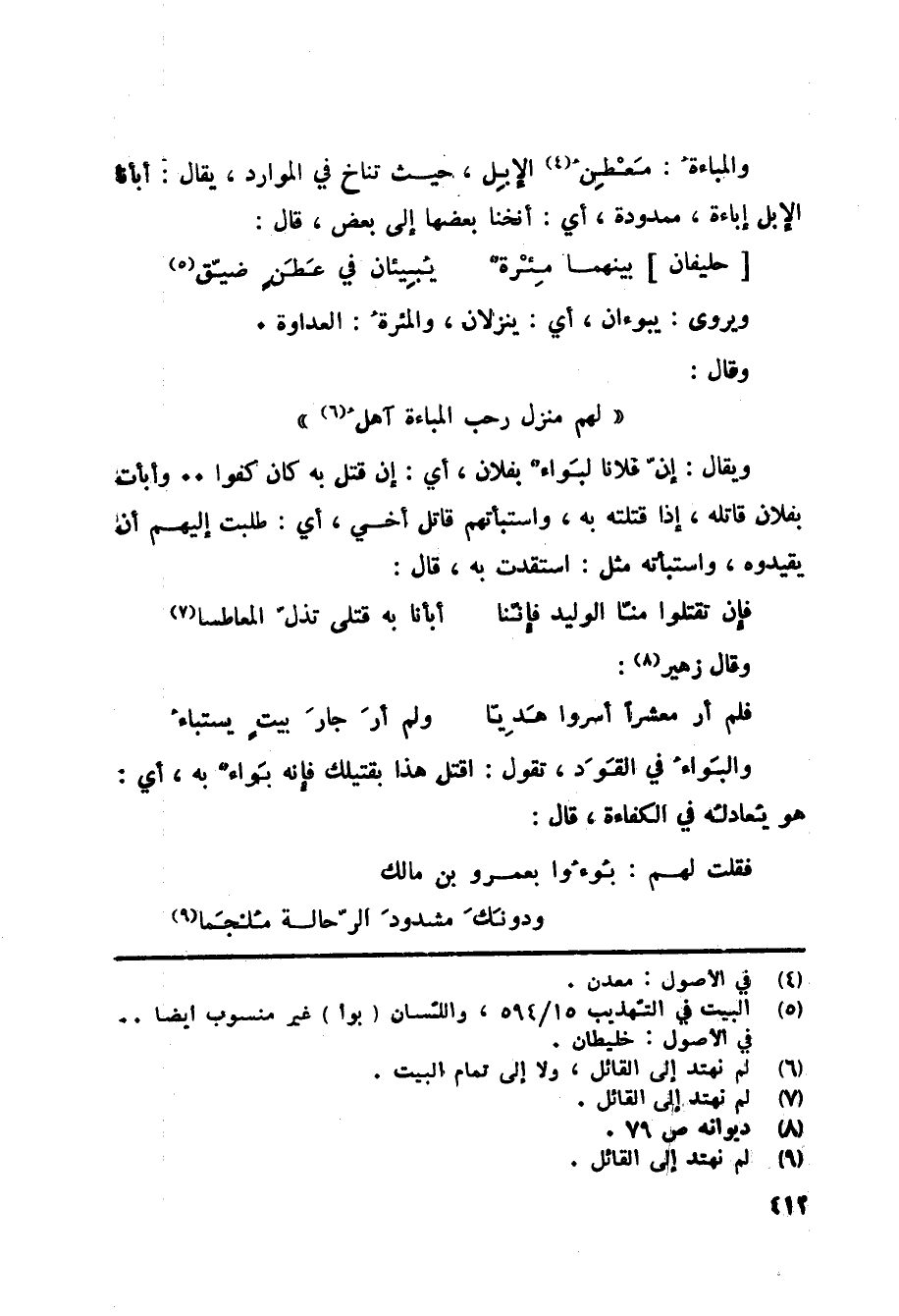 (5) البيت في التهذيب 15/ 594، واللسان (بوا) غير منسوب أيضا.. في الأصول: خليطان.