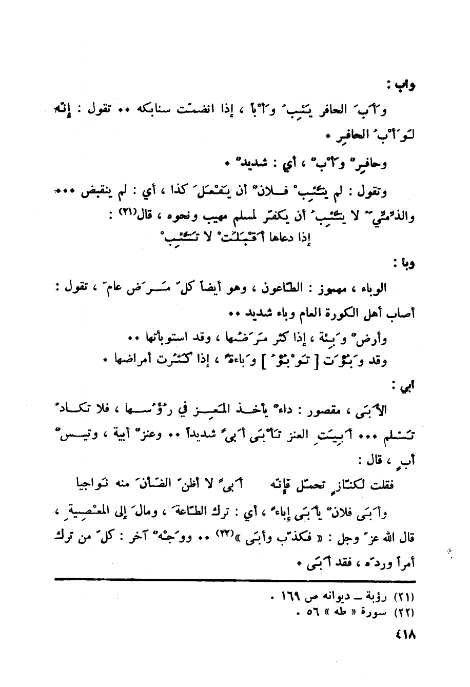 (21) (رؤبة) ديوانه ص 169.
