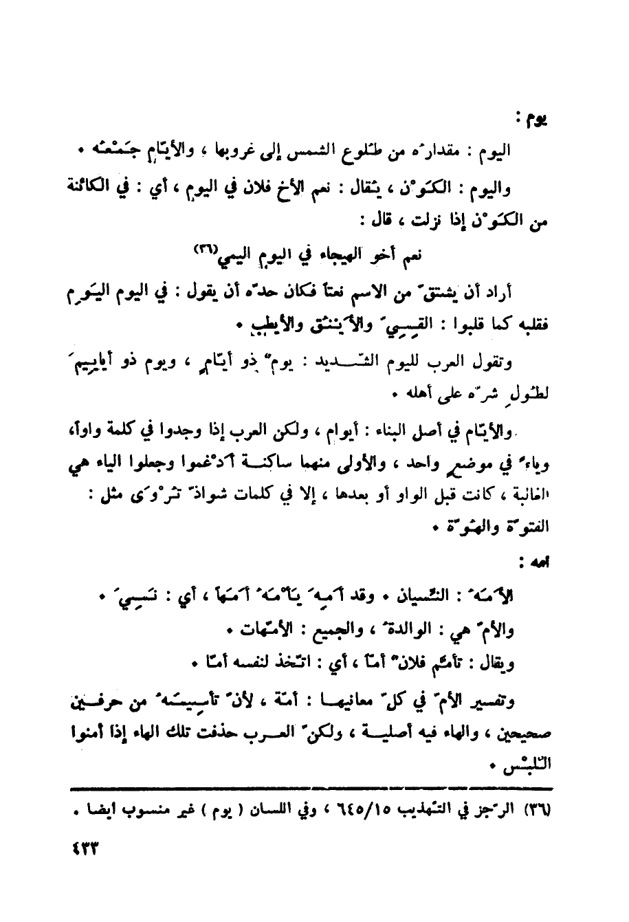 (36) الرجز في التهذيب 15/ 645، وفي اللسان (يوم) غير منسوب أيضا.