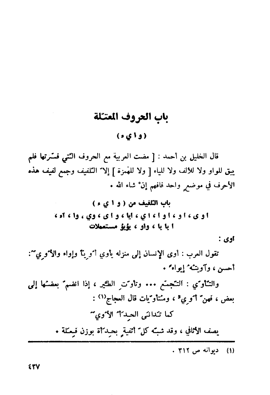 باب اللفيف من (وا يء) أوي، أو، أوأ، أي، أيا، وأ ي، وي، وا، آء، أيايا، واو، يؤيؤ مستعملات