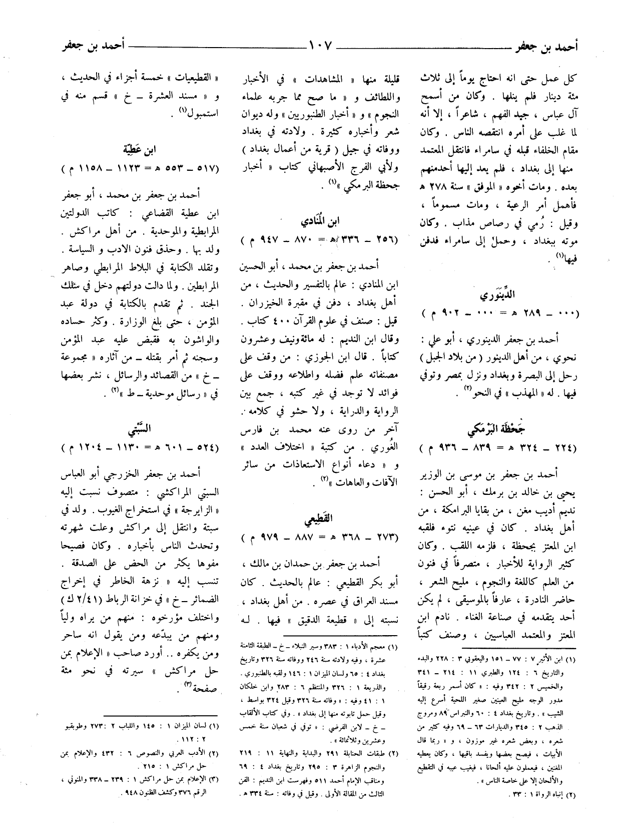 (1) معجم الأدباء 1: 383 وسير النبلاء - خ - الطبقة الثامنة عشرة، وفيه ولادته سنة 246 ووفاته سنة 326 وتاريخ بغداد 4: 65 ولسان الميزان 1: 146 ولقبه بالطنبوري.