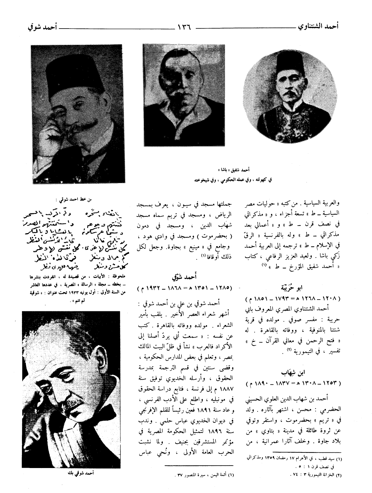 أحمد شوقي بن علي بن أحمد شوقي: أشهر شعراء العصر الأخير. يلقب بأمير الشعراء.
