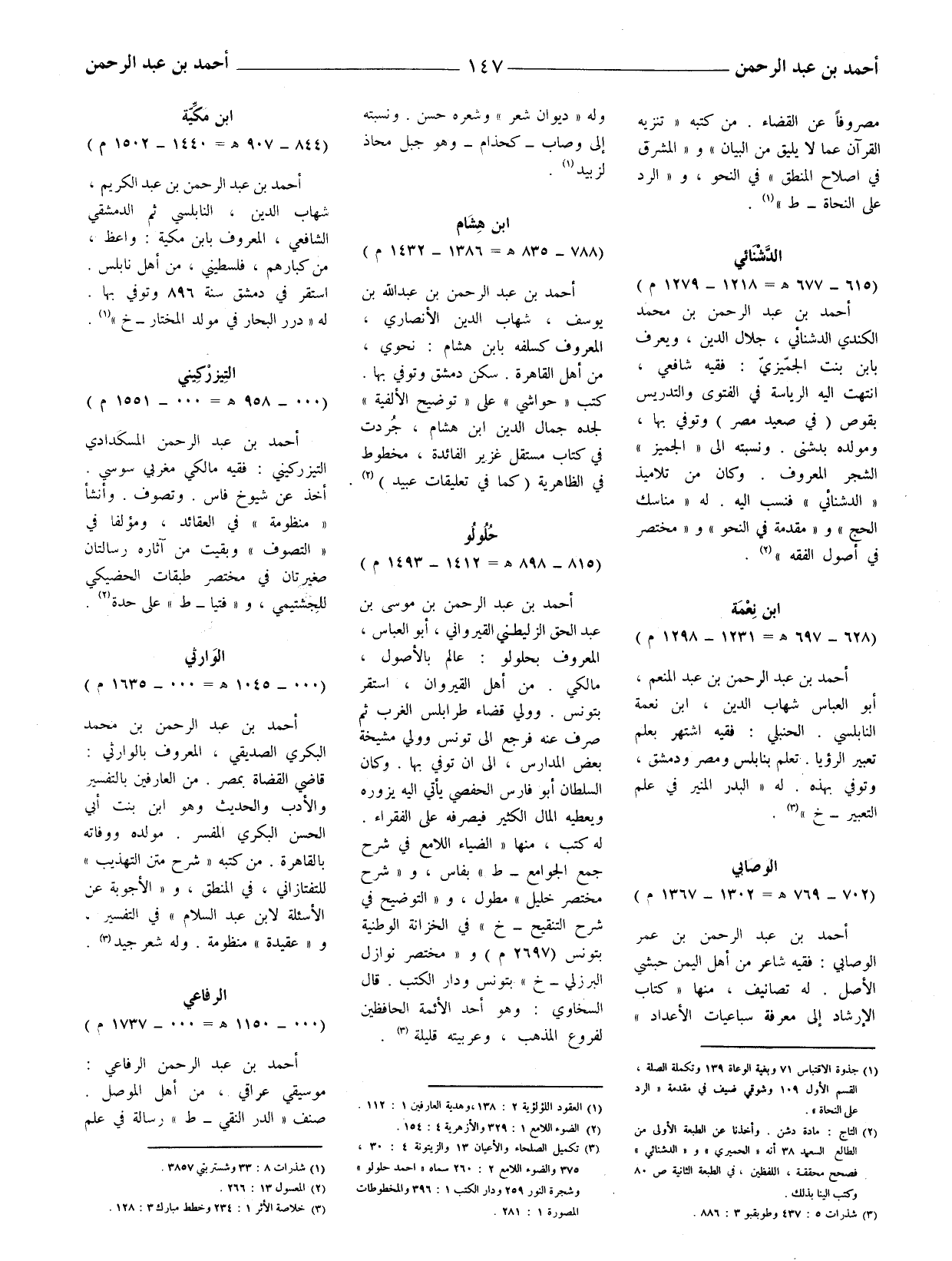 (3) تكميل الصلحاء والأعيان 13 والزيتونة 4: 30، 375 والضوء اللامع 2: 260 سماه (احمد حلولو) وشجرة النور 259 ودار الكتب 1: 396 والمخطوطات المصورة 1: 281.