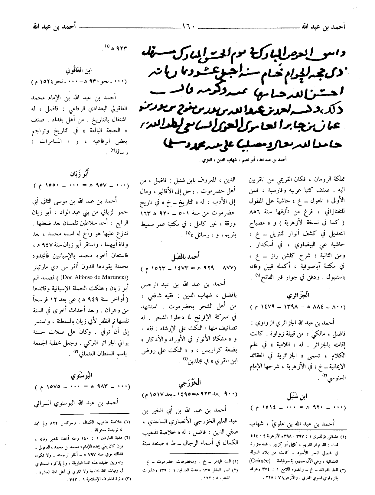 أحمد بن عبد الله الجزائري الزواوي: فاضل، مالكي، من قبيلة زواوة. كانت إقامته بالجزائر.