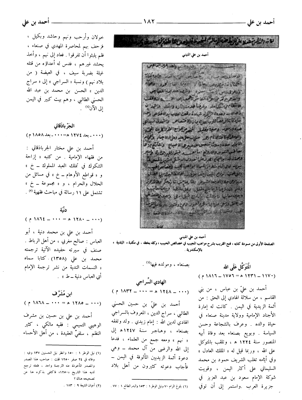 (1) نيل الوطر 1: 150 وانظر نيل الحسنيين 137 وفيه: وفاته في 24 صفر 1250 قلت: صاحب هذا المصدر والمصدر المأخوذة عنه الترجمة واحد، فلعله ترجح لديه هذا التاريخ (1250) فاكتفى بذكره هنا عن تصحيحه هناك؟