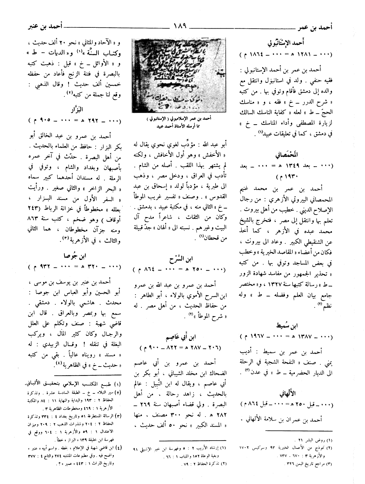 (3) ابن قاضي شهبة في الإعلام، بخطه. واسم أبيه (عنبر) واضح فيه. وفي مطبوعات المشتبه 274 والتاج 4: 377 وتاريخ التراث 1: 443 (عمير) ؟.