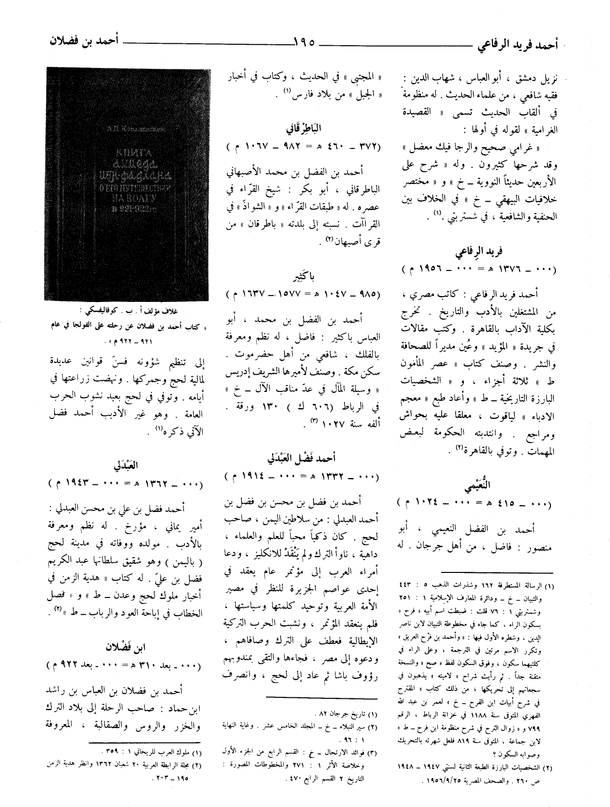 (2) مجلة الرابطة العربية 20 شعبان 1362 وانظر هدية الزمن195 - 203.