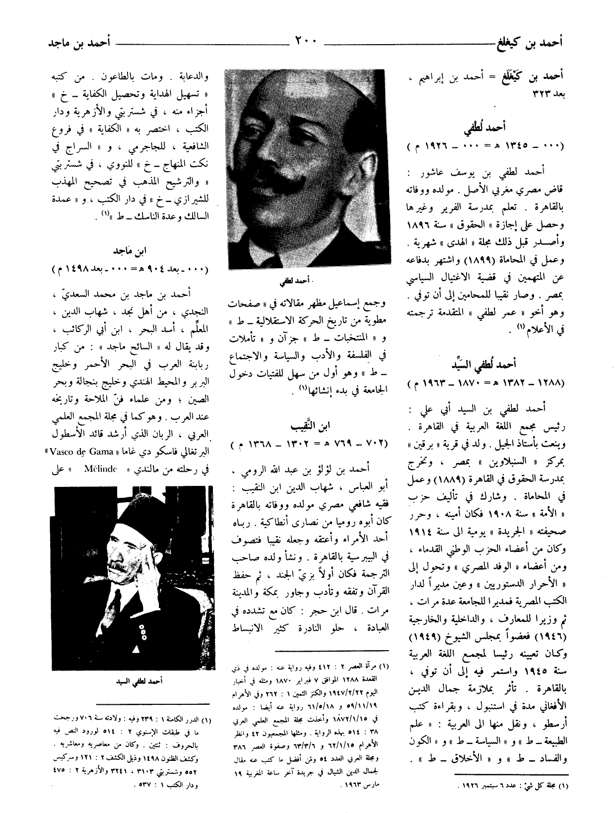 أحمد لطفي بن السيد أبي علي: رئيس مجمع اللغة العربية في القاهرة. وينعت بأستاذ الجيل.