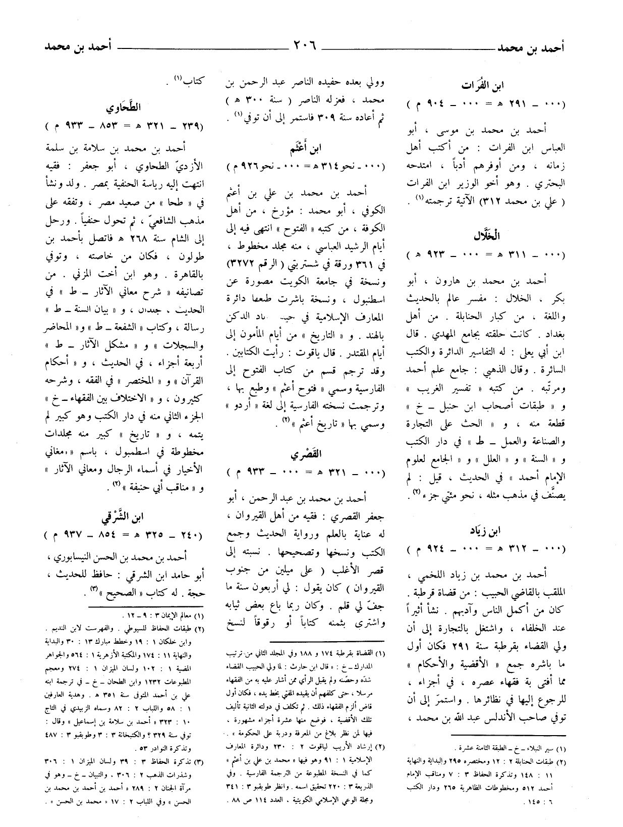 (2) إرشاد الأريب لياقوت 2: 230 ودائرة المعارف الإسلامية 1: 91 وهو فيها (محَّمد بن علي بن أعثم) كما في النسخة المطبوعة من الترجمة الفارسية. وفي الذريعة 3: 220 تحقيق اسمه.