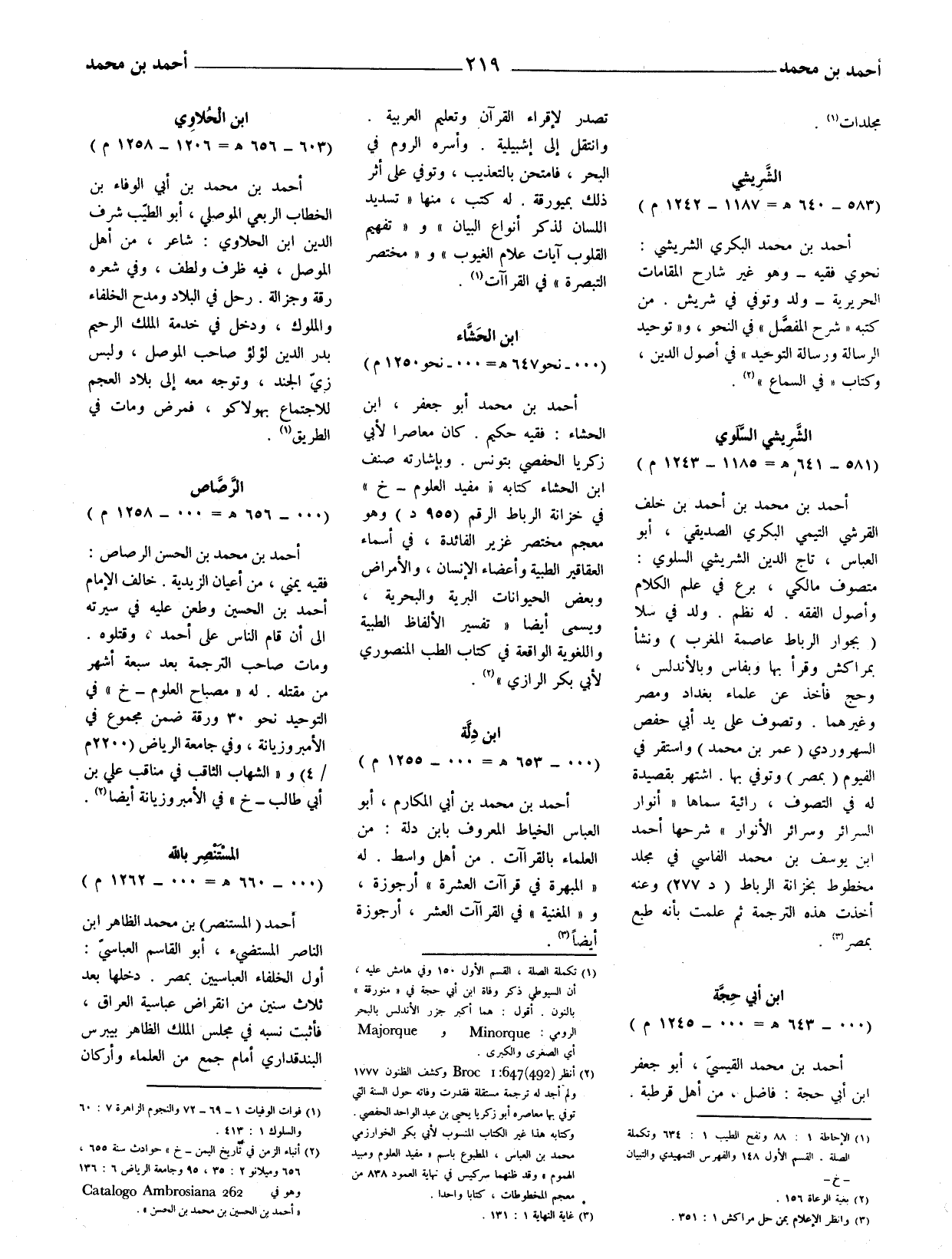(1) تكملة الصلة، القسم الأول 150 وفي هامش عليه، أن السيوطي ذكر وفاة ابن أبي حجة في (منورقة) بالنون. أقول: هما أكبر جزر الأندلس بالبحر الرومي: Minorque و Majorque أي الصغرى والكبرى.