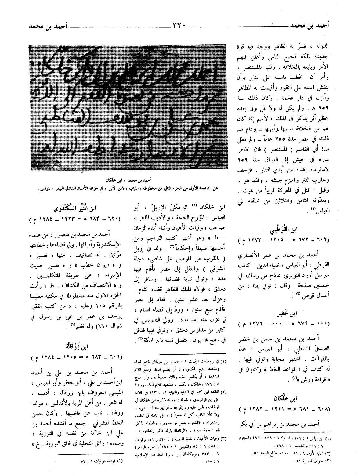 المؤرخ الحجة، والأدب الماهر، صاحب (وفيات الأعيان وأنباء أبناء الزمان - ط) وهو أشهر كتب التراجم ومن أحسنها ضبطا وإحكاماً (1) .