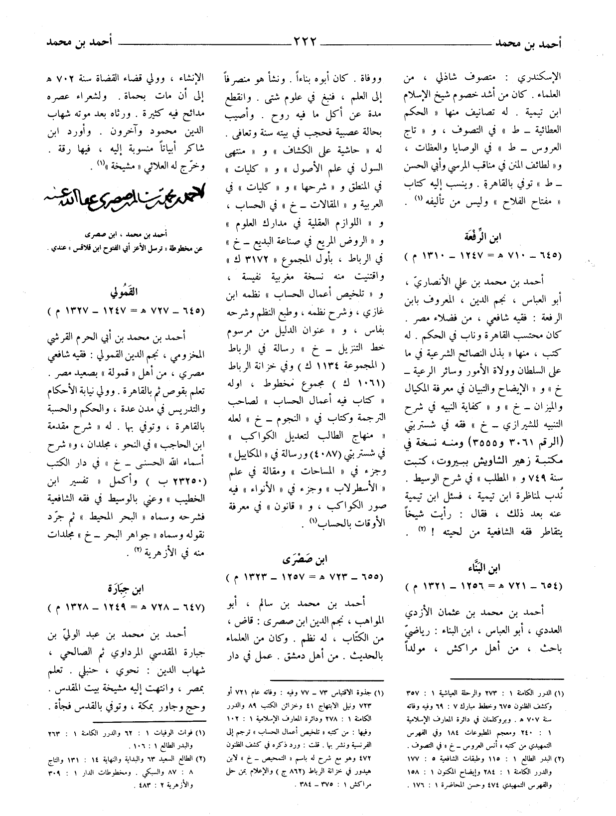(1) فوات الوفيات 1: 62 والدرر الكامنة 1: 263 والبدر الطالع 1: 106.