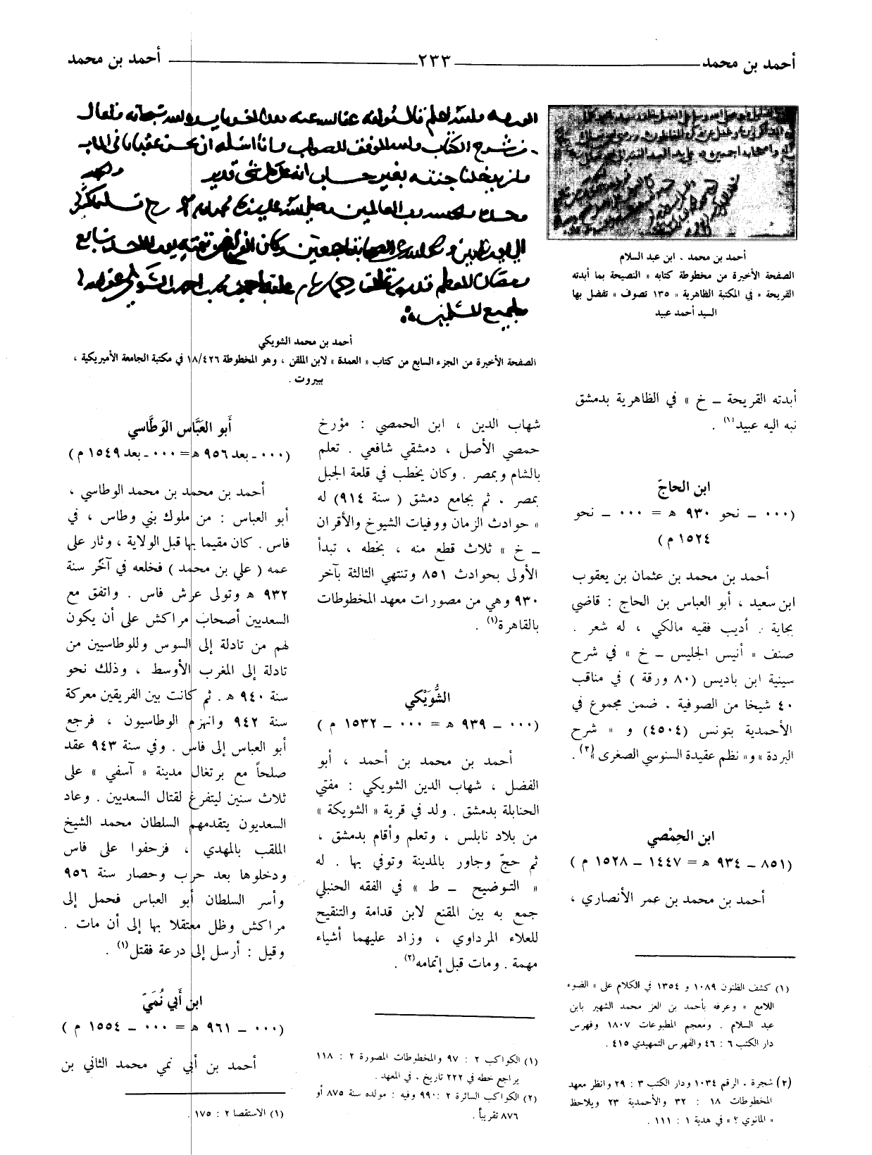 (1) كشف الظنون 1089 و 1354 في الكلام على (الضوء اللامع وعرفة بأحمد بن العز الشهير بابن عبد السلام ومعجم المطبوعات 1807 وفهرس دار الكتب 46:6 والفهرس التمهيدي415