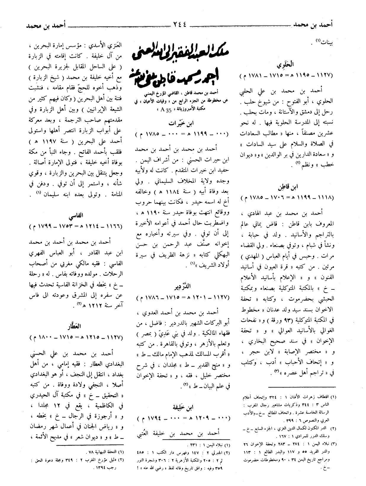 أحمد بن محمد بن عبد الهادي، المعروف بابن قاطن: قاض يماني عالم بالتراجم والأسانيد.