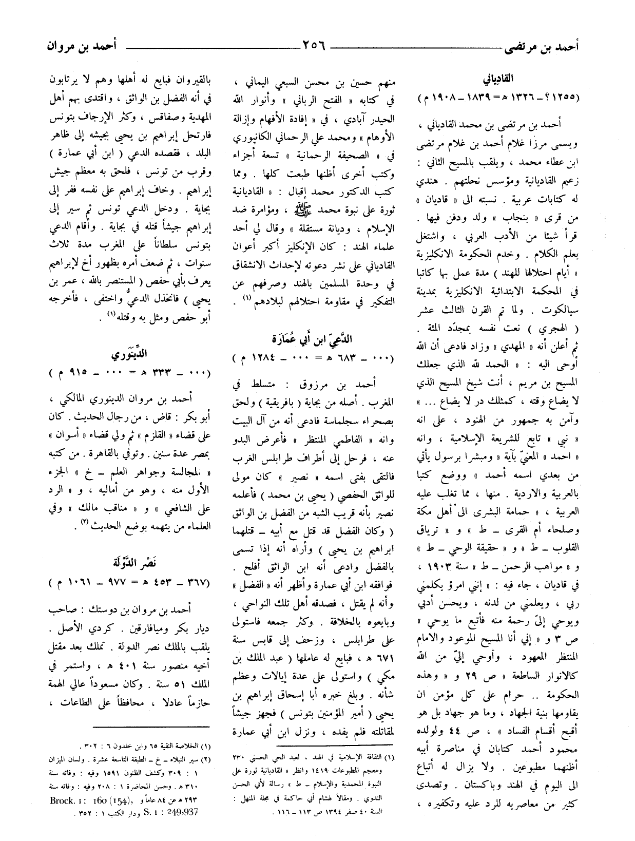 منهم حسين بن محسن السبعي اليماني، في كتابه (الفتح الرباني) وأنوار الله الحيدر آبادي، في (إفادة الأفهام وإزالة الأوهام) ومحمد علي الرحماني الكانپوري في (الصحيفة الرحمانية) تسعة أجزاء وكتب أخرى أظنها طبعت كلها. وكتب الدكتور محمد إقبال: (القاديانية ثورة على نبوة محمد صلّى الله عليه وسلم، ومؤامرة ضد الإسلام، وديانة مستقلة) وقال لي أحد علماء الهند: كان الإنكليز أكبر أعوان لقادياني على نشر دعوته لإحداث الانشقاق في وحدة المسلمين بالهند وصرفهم عن التفكير في مقاومة احتلالهم لبلادهم (1) .