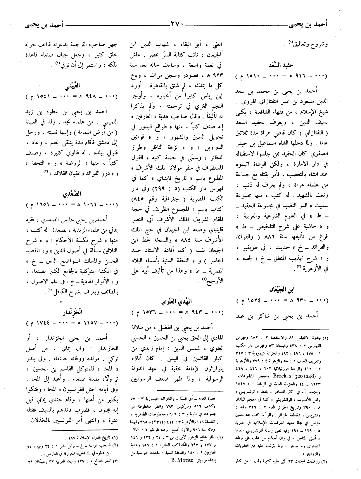 (1) انظر بدائع الزهور لابن إياس 3: 24 و 122 و 146 و 277 و 297 والكواكب السائرة 1: 156 وهدية العارفين 1: 140 والتحفة السنية: مقدمة الفرنسية من إنشاء موريتز)
