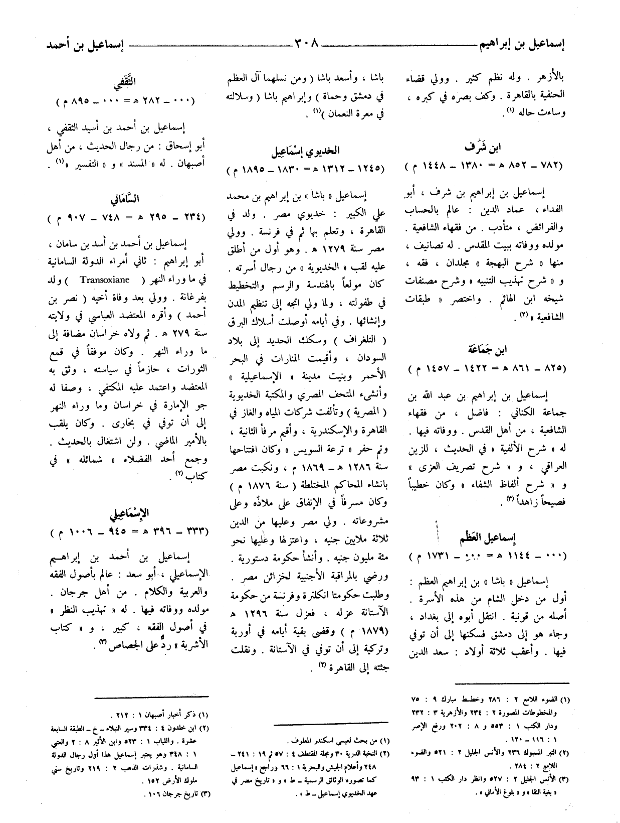 (2) ابن خلدون 4: 334 وسير النبلاء - خ - الطبقة السابعة عشرة. واللباب 1: 523 وابن الأثير 8: 2والعتبي 1: 348 وهو يعتبر إسماعيل هذا أول رجال الدولة السامانية وشذرات الذهب 2: 219 وتاريخ سني ملوك الأرض 152.