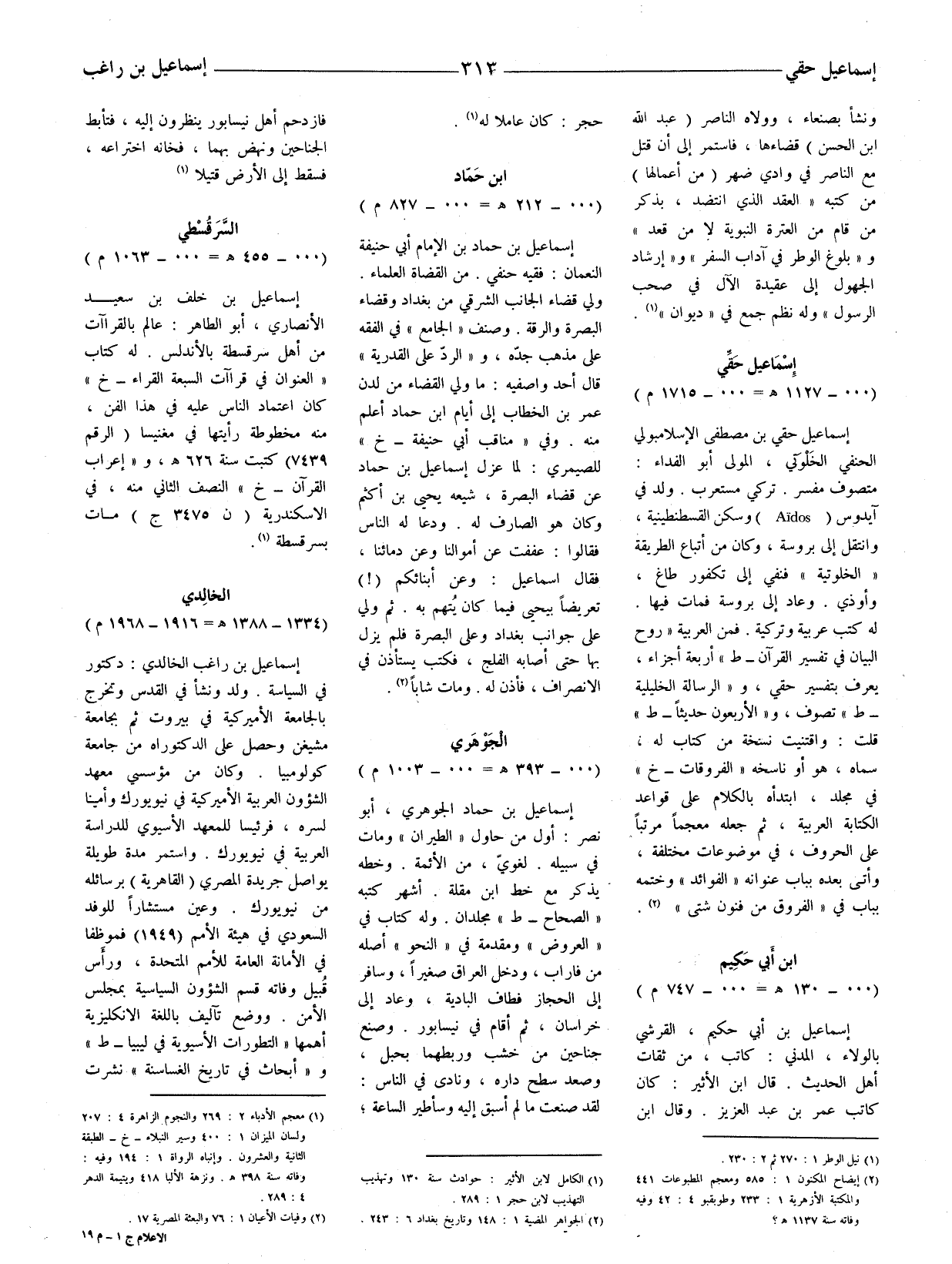إسماعيل بن حماد الجوهري، أبو نصر: أول من حاول (الطيران) ومات في سبيله. لغويّ، من الأئمة. وخطه يذكر مع خط ابن مقلة. أشهر كتبه (الصحاح) مجلدان. وله كتاب في (العروض) ومقدمته في (النحو) أصله من فاراب، ودخل العراق صغيرا، وسافر إلى الحجاز فطاف البادية، وعاد إلى خراسان، ثم أقام في نيسابور. وصنع جناحين من خشب وربطهما بحبل، وصعد سطح داره، ونادى في الناس: لقد صنعت ما لم أسبق إليه وسأطير الساعة،