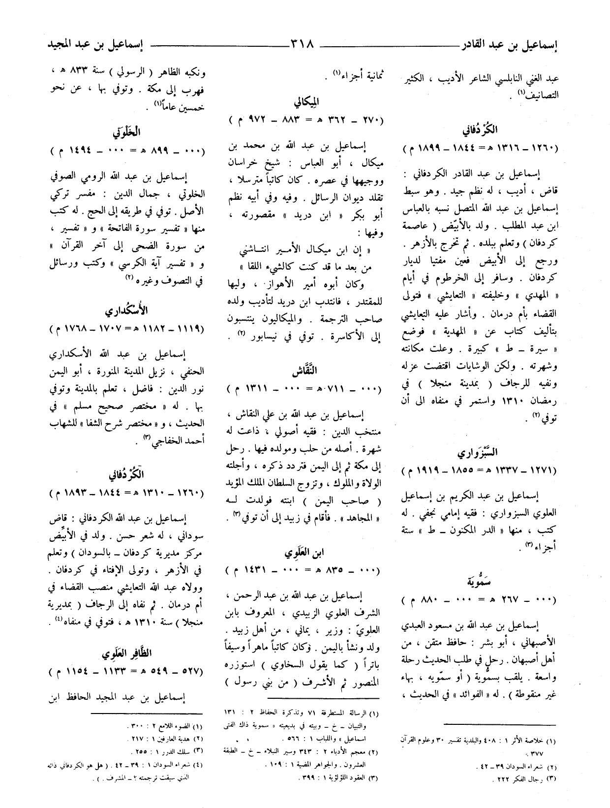 (1) خلاصة الأثر 1: 408 والبلدية تفسير 30 وعلوم القرآن 377.