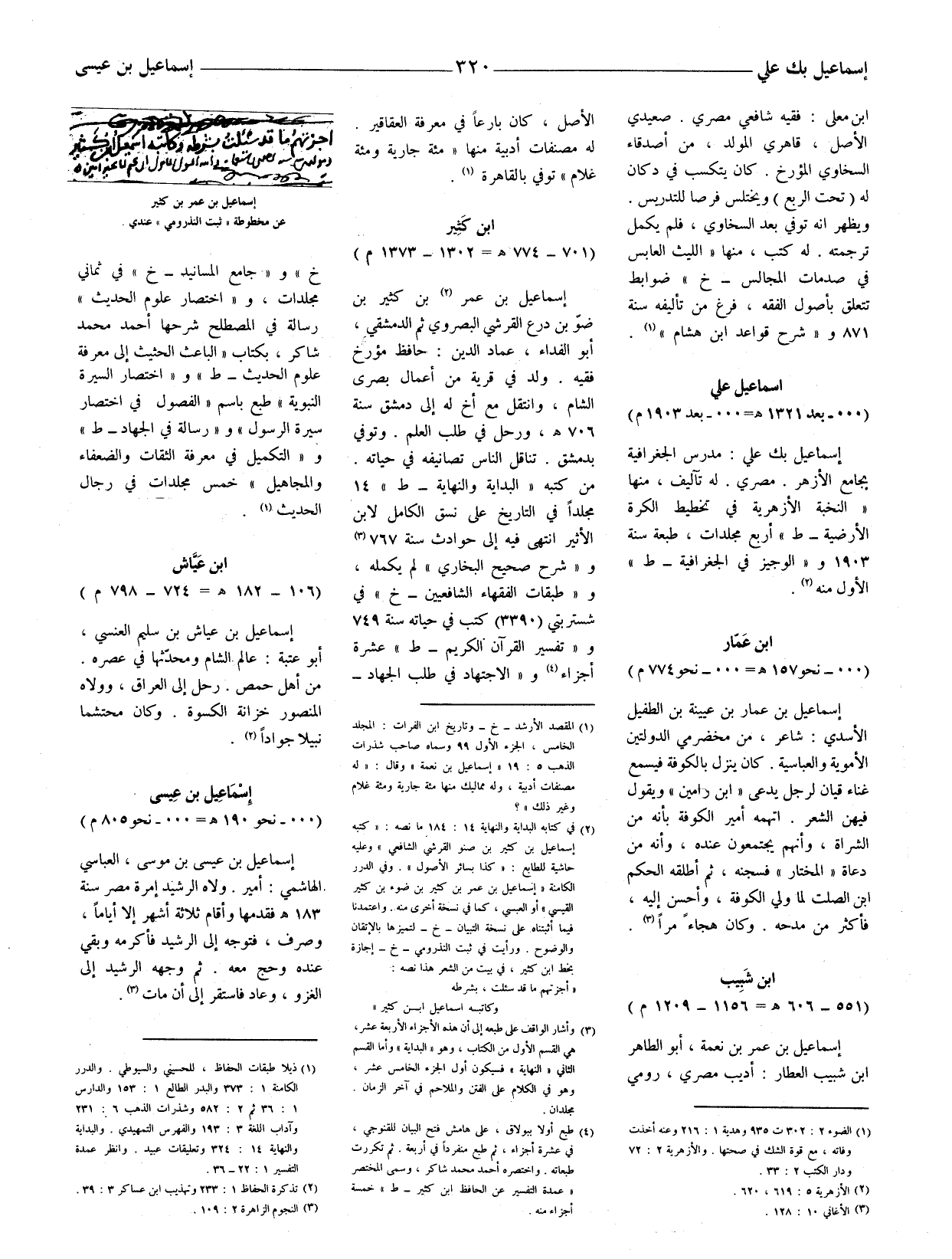 (2) في كتابه البداية والنهاية 14: 184 ما نصه: (كتبه إسماعيل بن كثير بن صنو القرشي الشافعيّ) وعليه حاشية للطابع: (كذا بسائر الأصول) .