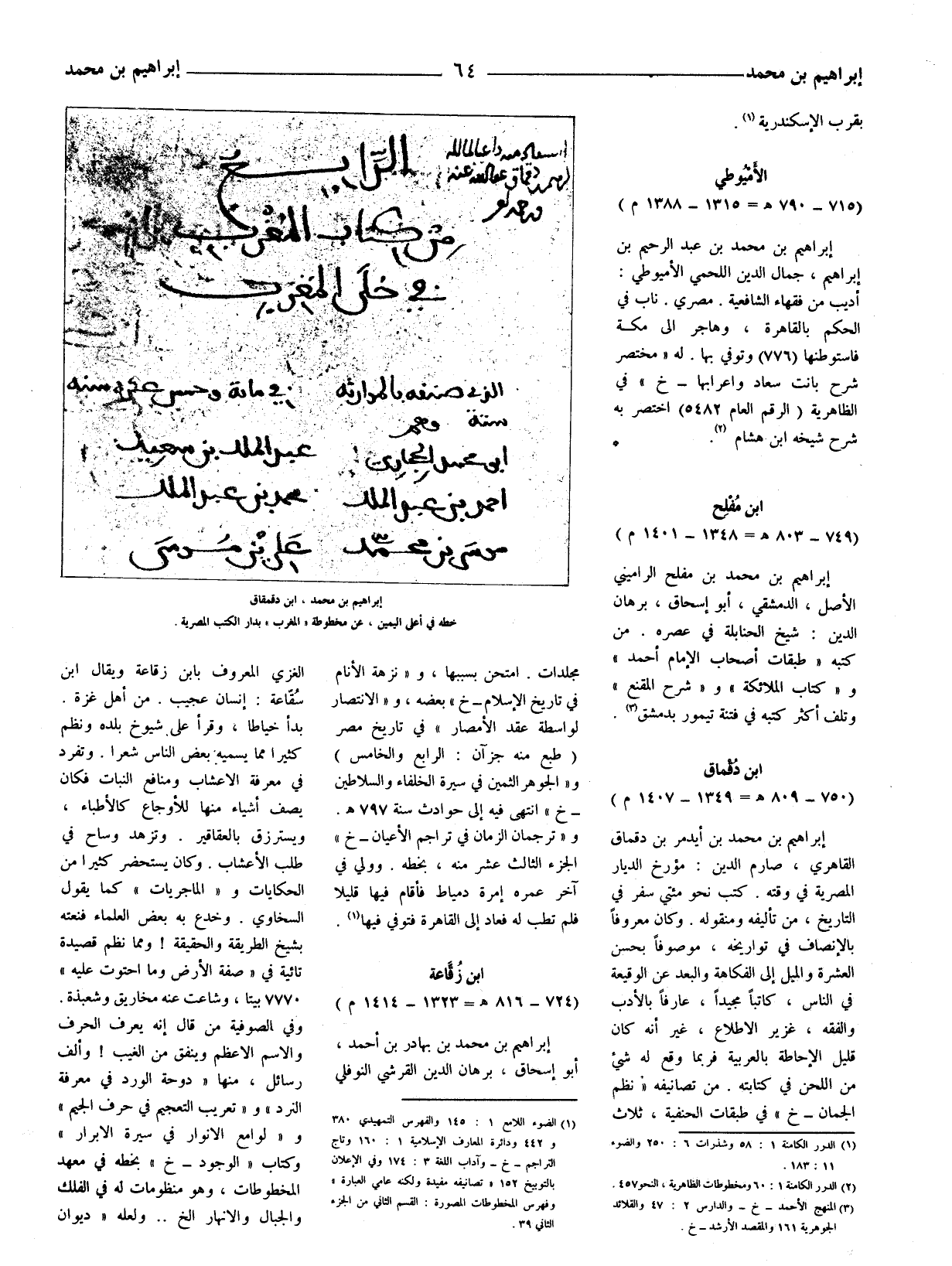 إبراهيم بن محمد بن مفلح الراميني الأصل، الدمشقيّ، أبو إسحاق، برهان الدين: شيخ الحنابلة في عصره. من كتبه (طبقات أصحاب الإمام أحمد) و (كتاب الملائكة) و (شرح المقنع) وتلف أكثر كتبه في فتنة تيمور بدمشق (3) .
