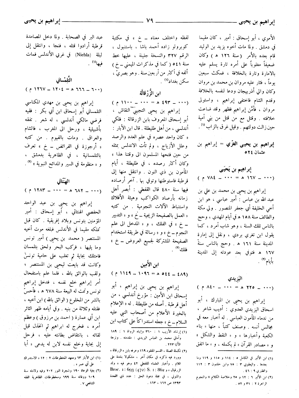 (2) تكملة الصلة، القسم المفقود 169 وعرفه بابن (الزرقالة) وورد فيه ذكره في مكان آخر، مشكولا بشدة على اللام. وأخبار العلماء للقفطي 42 وهو فيه (ولد الزرقيال) و.