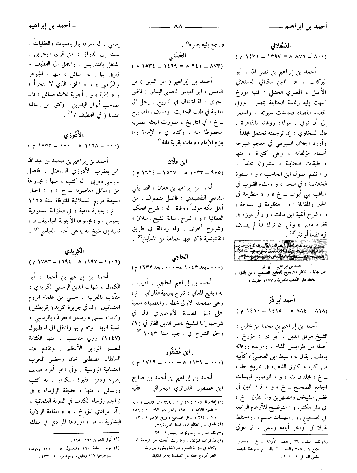 (1) نظم العقيان 31 والمقصد الأرشد - خ - والضوء اللامع 1: 205 والسحب الوابلة - خ - ومجلة المجمع العلمي العراقي 2: 106.