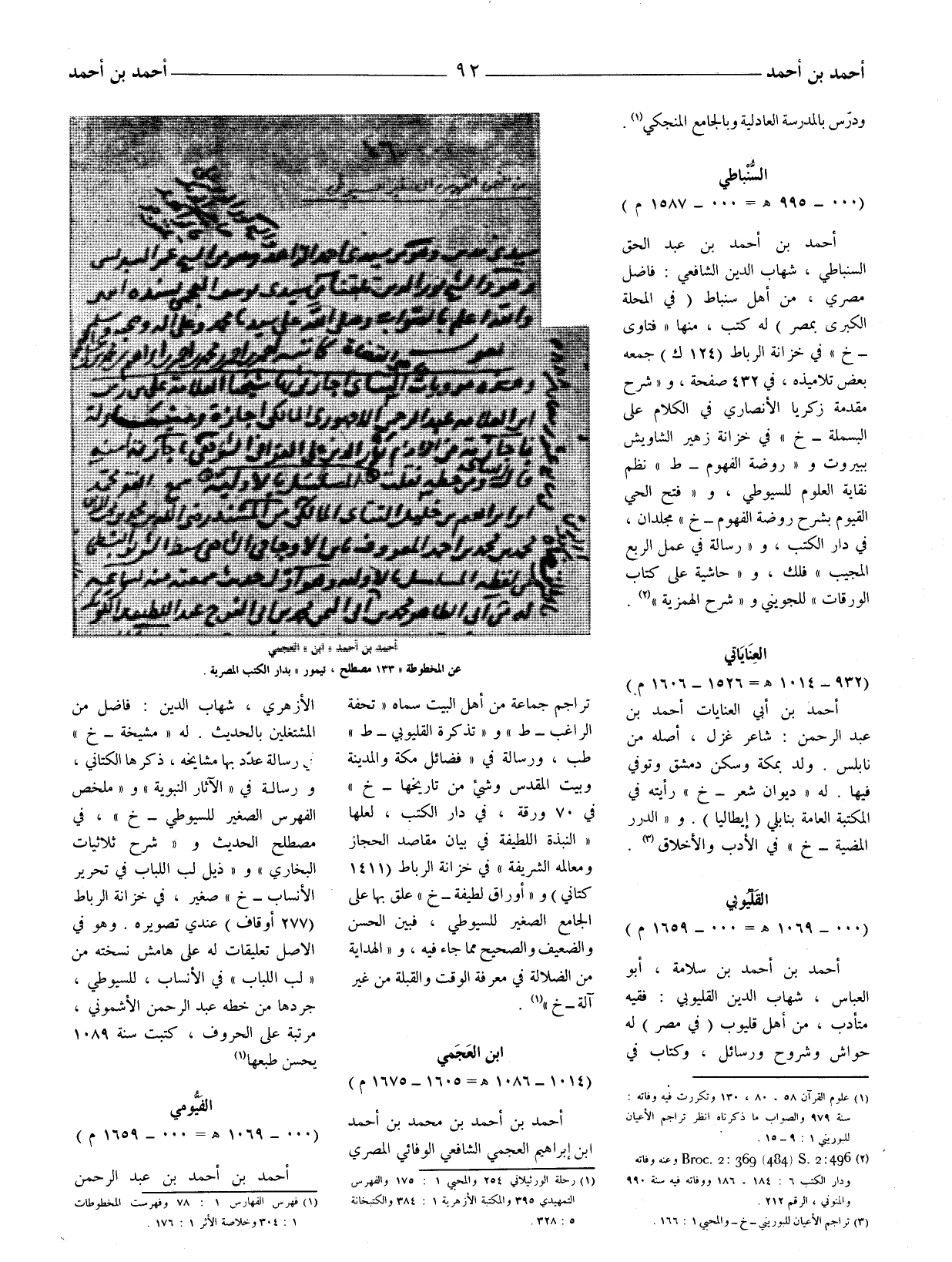 (1) رحلة الورثيلاني 254 والمحبي 1: 175 والفهرس التمهيدي 395 والمكتبة الأزهرية 1: 384 والكتبخانة 5: 328.